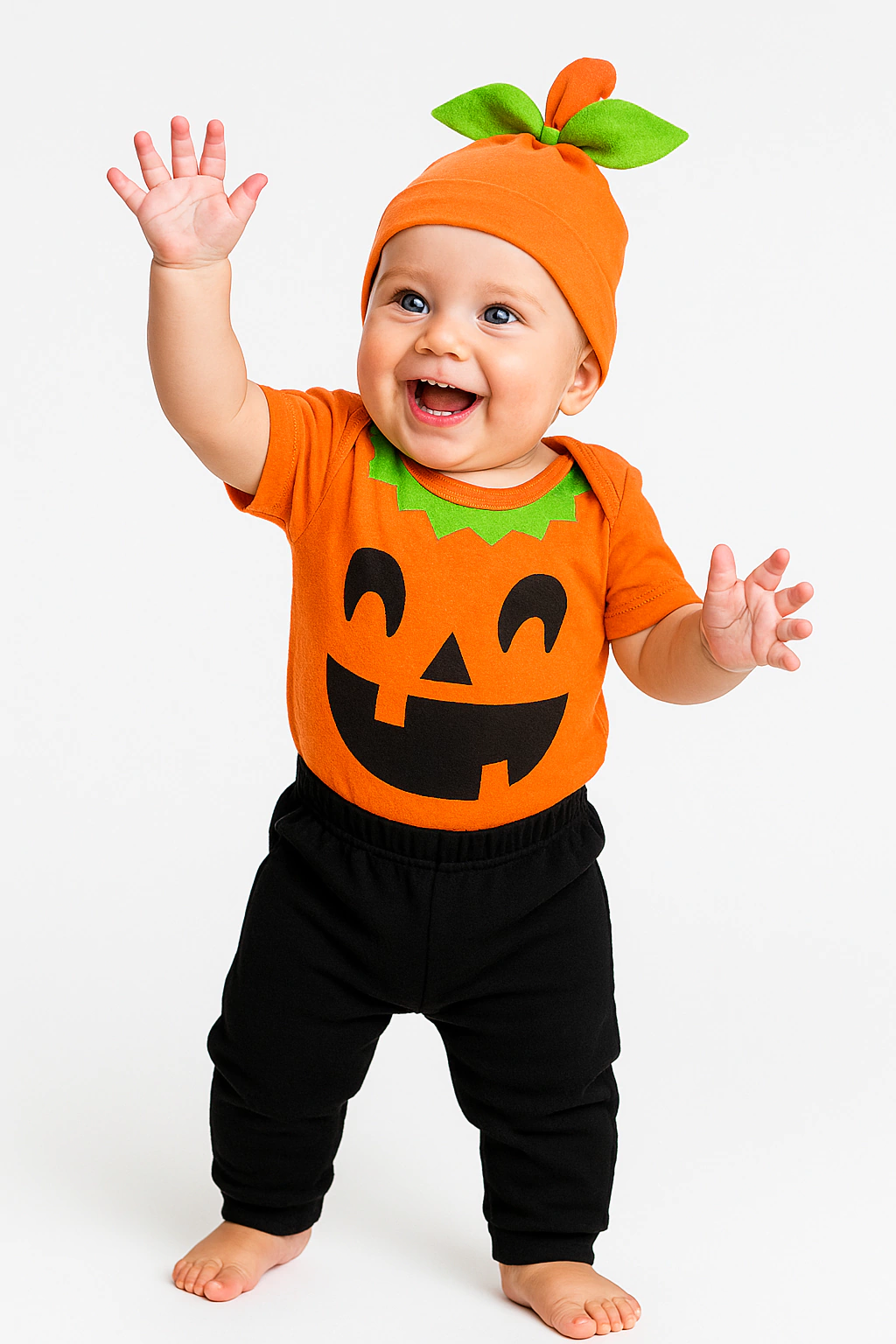 Body Manga Corta HALLOWEEN + Pantalón Interlock Color Negro + Gorrito haciendo juego.
