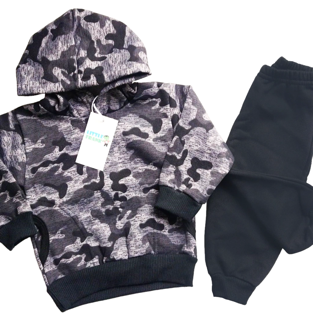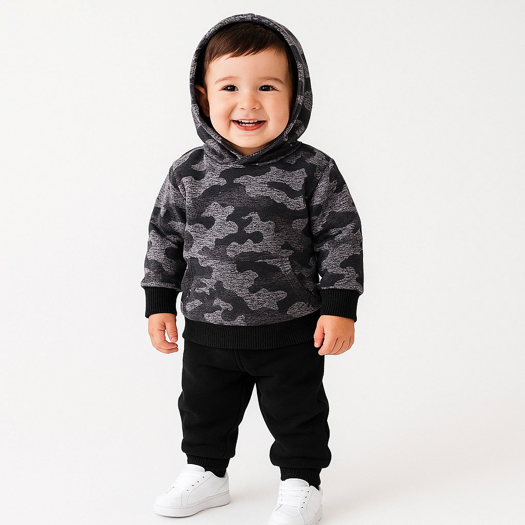 Conjunto de Buzo de Frisa Estampado con Capucha, Bolsillos y Puños, y Pantalón de Frisa Liso con Puño.