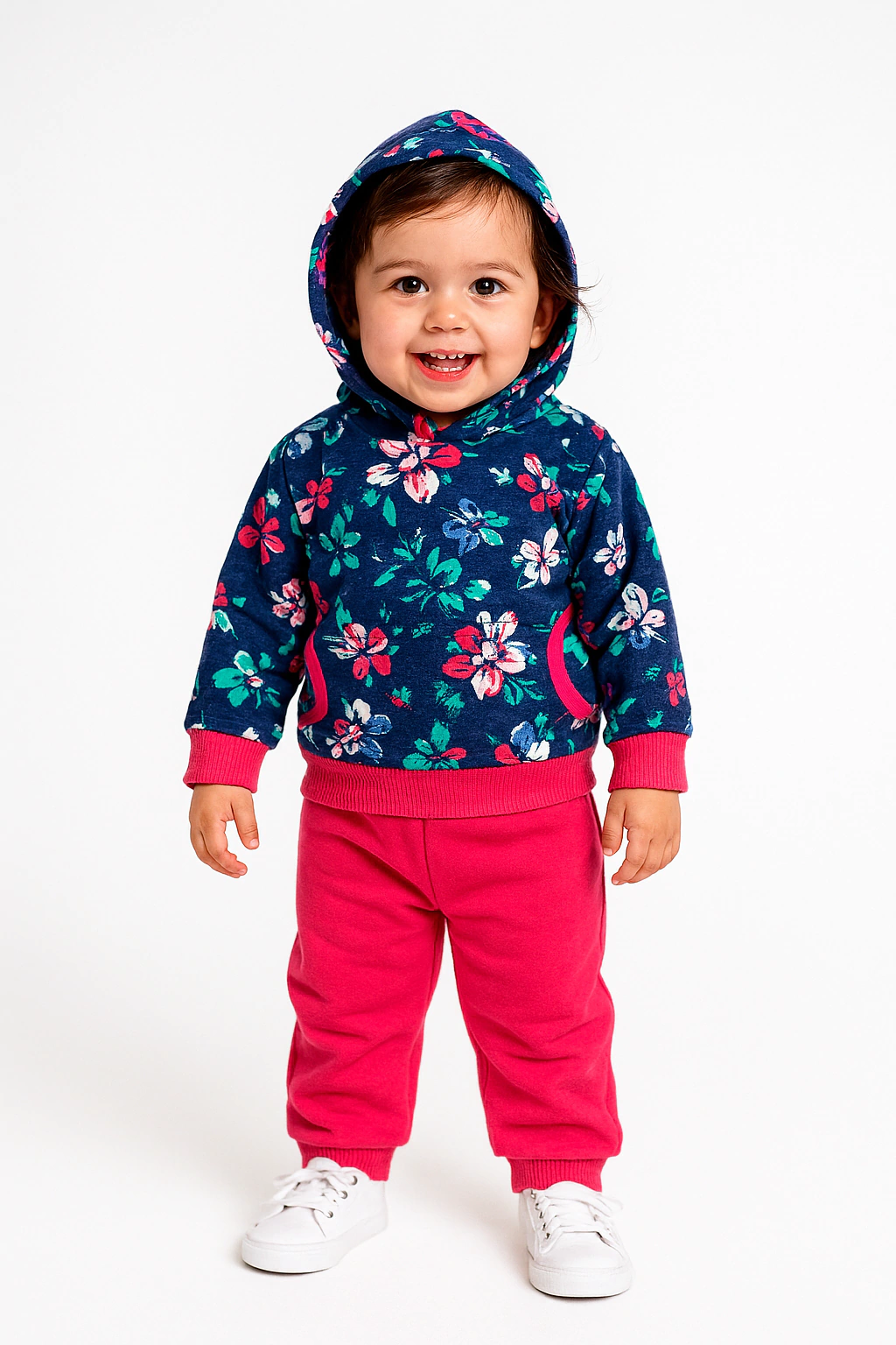 Conjunto de Buzo de Frisa Estampado con Capucha, Bolsillos y Puños, y Pantalón de Frisa Liso con Puño.