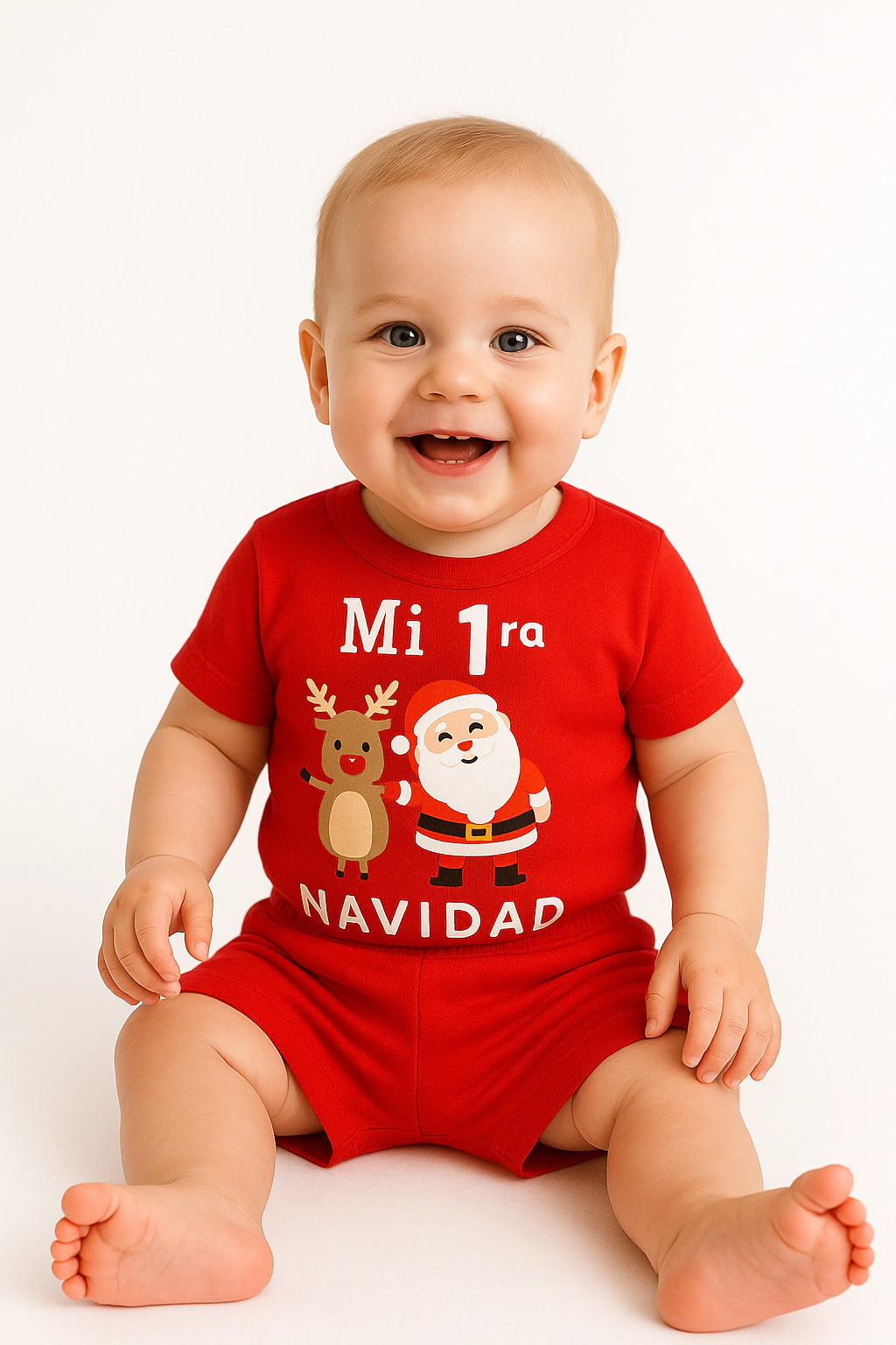 Conjunto de Body Manga Corta PRIMERA NAVIDAD + SHORT LISO. Conjunto 100% algodón Premium - Excelente calidad.