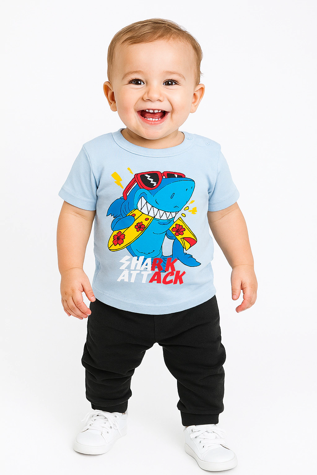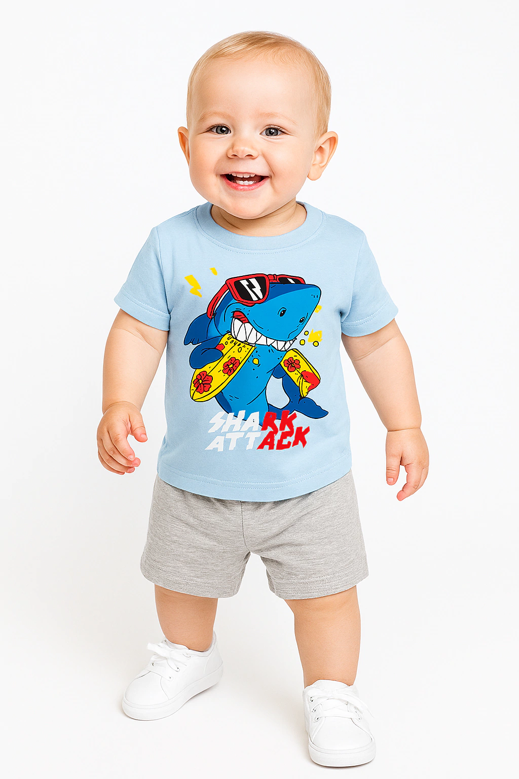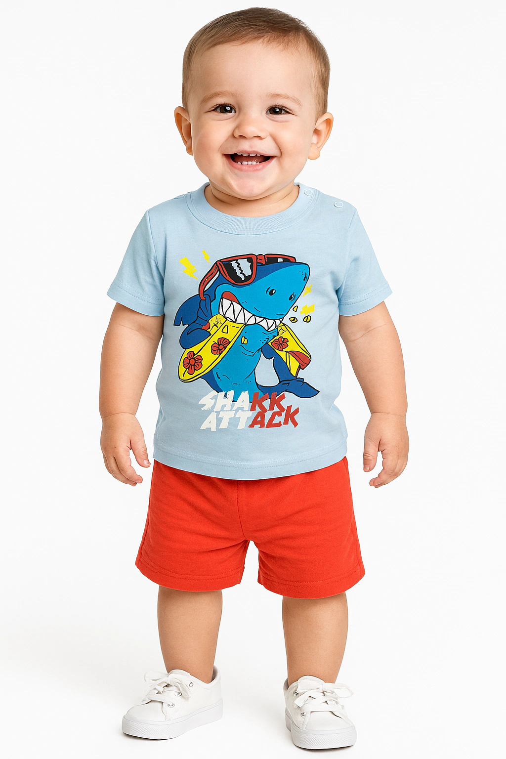 Conjunto de Remera Manga Corta con Estampa en en frente, cuello redondo con broche + Short algodón Liso ó Pantalón interlock algodón. (Es 1 sola opción: short o pantalón) Conjunto 100% algodón Premium - Excelente calidad.