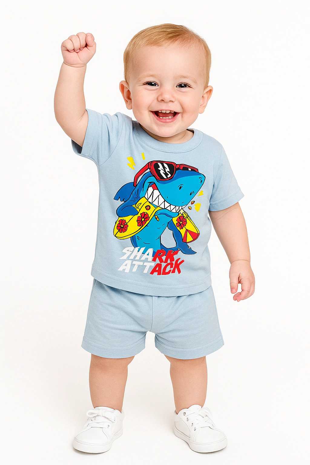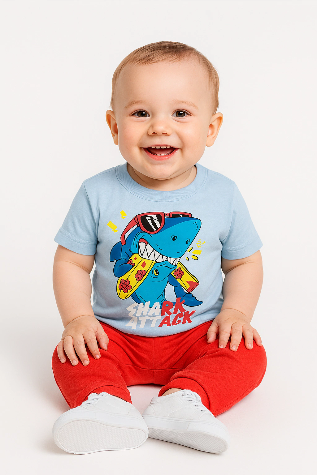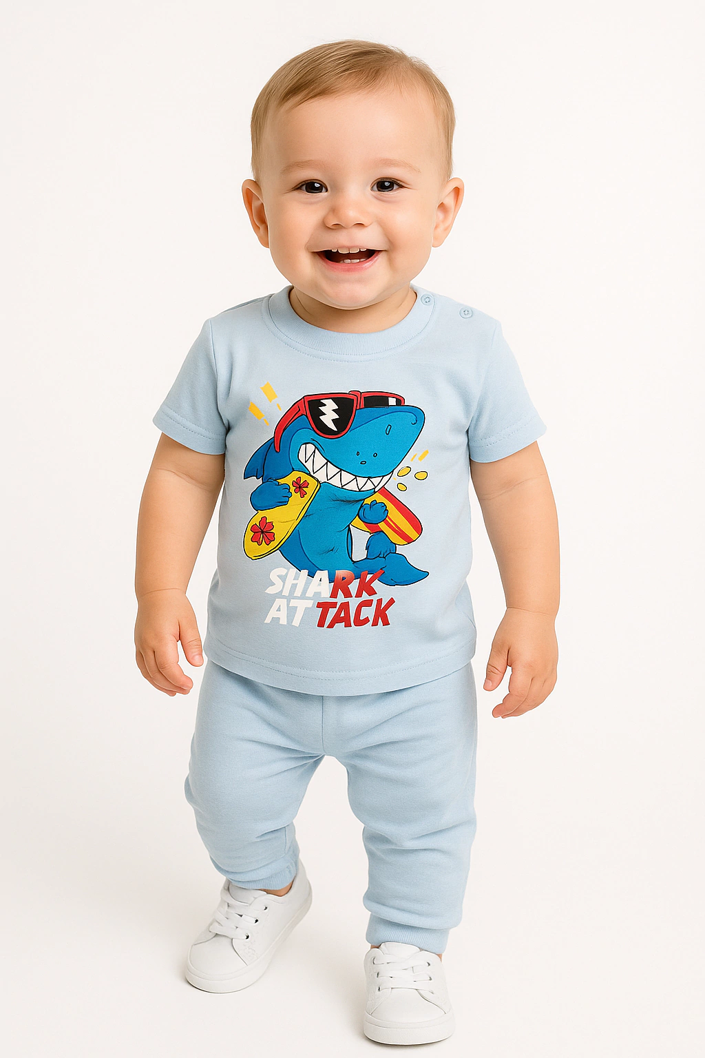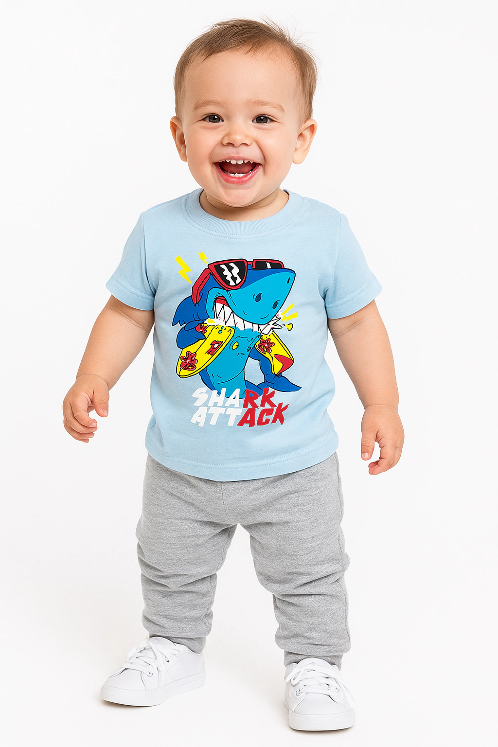 Conjunto de Remera Manga Corta con Estampa en en frente, cuello redondo con broche + Short algodón Liso ó Pantalón interlock algodón. (Es 1 sola opción: short o pantalón) Conjunto 100% algodón Premium - Excelente calidad.