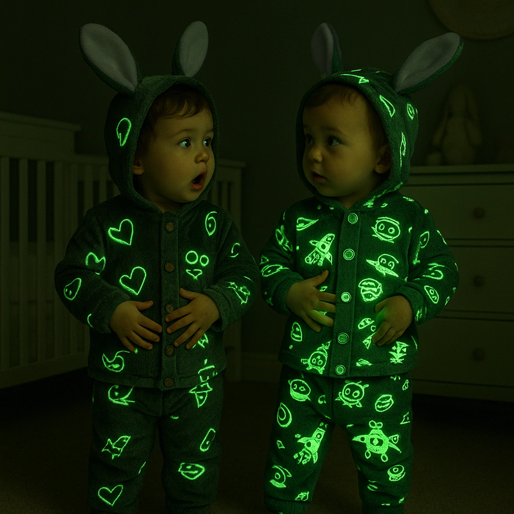Este conjunto es perfecto para mantener a tu bebé abrigado y cómodo durante los días frescos, mientras disfruta de un diseño divertido y seguro gracias a su característica que brilla en la oscuridad.
