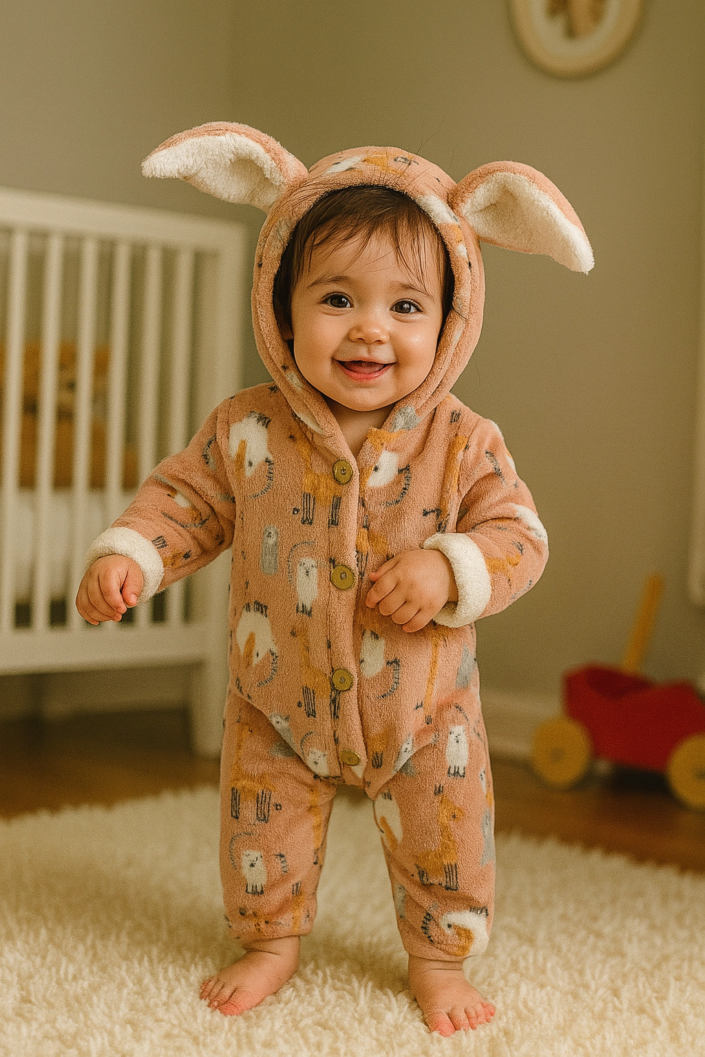 Enterito de Soft con Capucha con Orejitas, mangas y orejas con corderito. El enterito es SOFT BIFAZ, el interior es igual que el exterior. Super abrigado, una suavidad increíble al tacto. PREMIUM.