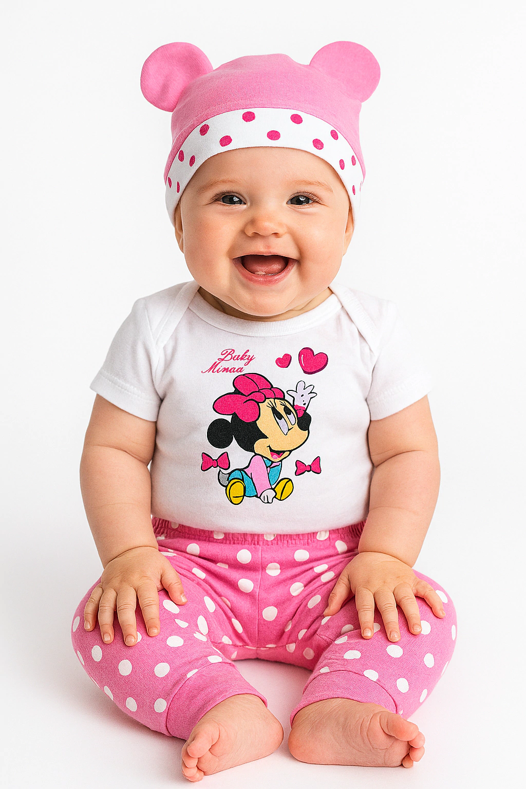 Set de 3 Piezas compuesto por: Body Manga Corta + Pantalón + Gorrito. Conjunto 100% algodón Premium - Excelente calidad.