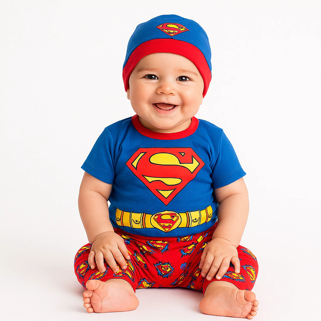 Set de 3 Piezas compuesto por: Body Manga Corta + Short de algodón Estampado + Gorro. Conjunto 100% algodón Premium - Excelente calidad.