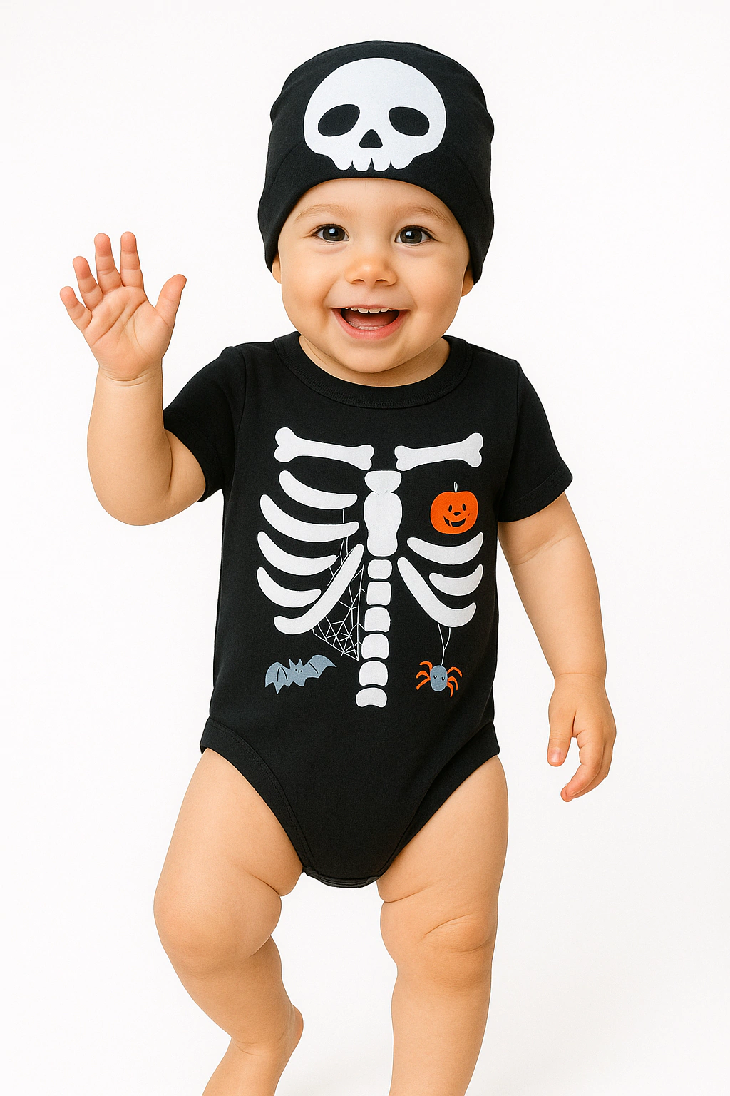 Body Manga Corta HALLOWEEN + Gorrito haciendo juego.